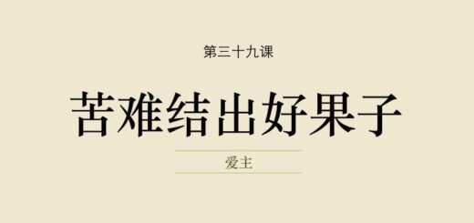 课程教材 2023-07-18 by Jennifer Sum · Published 2023-07-18 · Last modified 2024-12-04 第三十九课 | 苦难结出好果子 我们受苦能结出好果子(附六个例子)。点击课程标题查看课程笔记。…